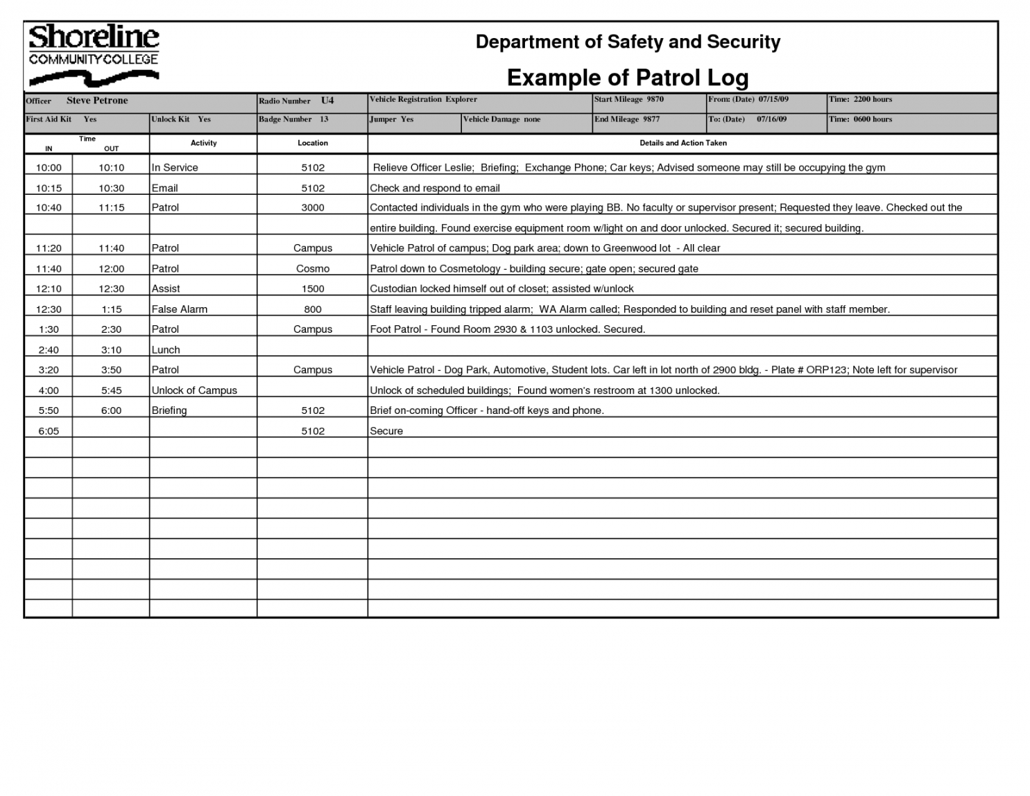 Free Security Officer Daily Log Template Example Patrol Lo…